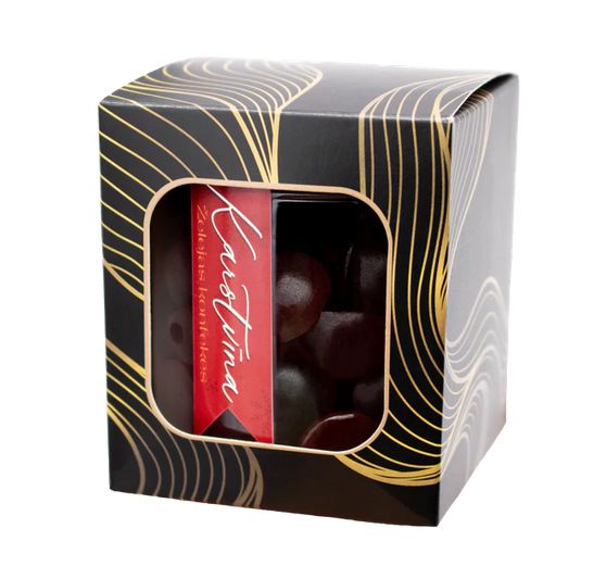 Sastāvdaļas: glikozes sīrups, cukurs, ūdens, želatīns, skābuma regulētājs – citronskābe, dabīgā pārtikas krāsviela – melno burkānu sulas koncentrāts, aromatizētājs(i),kanēlis, krustnagliņas, smaržīgie pipari, koriandrs, muskatrieksts, kardamons, ingvers. (VAR SATURĒT RIEKSTUS UN LAKTOZI). Uzglabāt oriģinālā iepakojumā, sausā vēsā vietā.